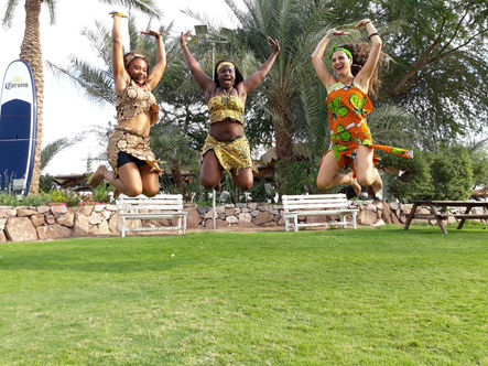 מופע ססגוני צבעוני וסוחף. המופע משלב את אומנות התיפוף והשירה האפריקנית לצד אומנות המחול האפריקאי. המחול האפריקאי מאופיין באנרגיה גבוהה ומתפרצת ואינו משאיר אף צופה אדיש. הלהקה תשלהב את הקהל במקצבים אפריקאיים מטורפים, שבמהלכם הרקדנים יבצעו צעדי-ריקוד מסורתיים ואקרובטיים. השילוב בין התיפוף לריקוד מרעיד את לב הקהל בהשתאות. הלהקה לובשת בגדים אפריקאיים צבעוניים ואותנטיים ומנגנת על כלי נגינה מקוריים.